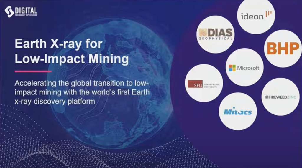 Vancouver, BC (November 25, 2021) – Canada’s Digital Technology Supercluster is pleased to announce the launch of the Earth X-ray for Low-Impact Mining project. This project will deliver a new Discovery Platform that will help mining exploration companies to precision-target deposits beneath the Earth’s surface in a way that changes the economics of discovery and increases the sustainable production of critical mineral resources needed to fuel the clean energy transition.