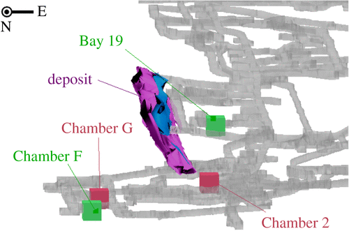 Muon detectors were placed at a depth of 600 m providing a large field of view (over 1 km across on the surface) with sufficient locations to enable good 3D imaging of the deposit despite complex geology.